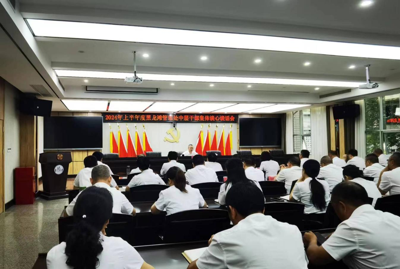 按照《四川省都江堰水利发展中心一体化分片纪检监督工作规则(试行)》要求,为强化黑龙滩管理处中层干部廉洁意识和担当意识,全力营造干事创业、风清气正的政治生态环境,结合正在开展的党纪学习教育工作,中心纪检监督四室于7月5日对黑龙滩管理处48名组长以上中层干部开展了集体谈心谈话。