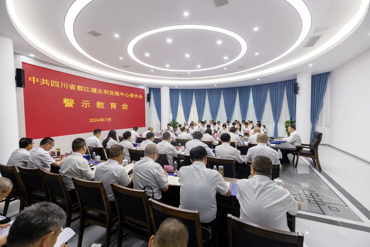7月4日,省都江堰水利发展中心党委召开警示教育会议,对中心领导班子成员、机关各处室主要负责人、灌区管理处和金宝瓶水利发展公司班子成员等进行警示教育,就“典型案例和公款吃请问题以案促改专项整治”工作进行安排部署。中心党委书记、主任朱泽华主持会议并讲话。
