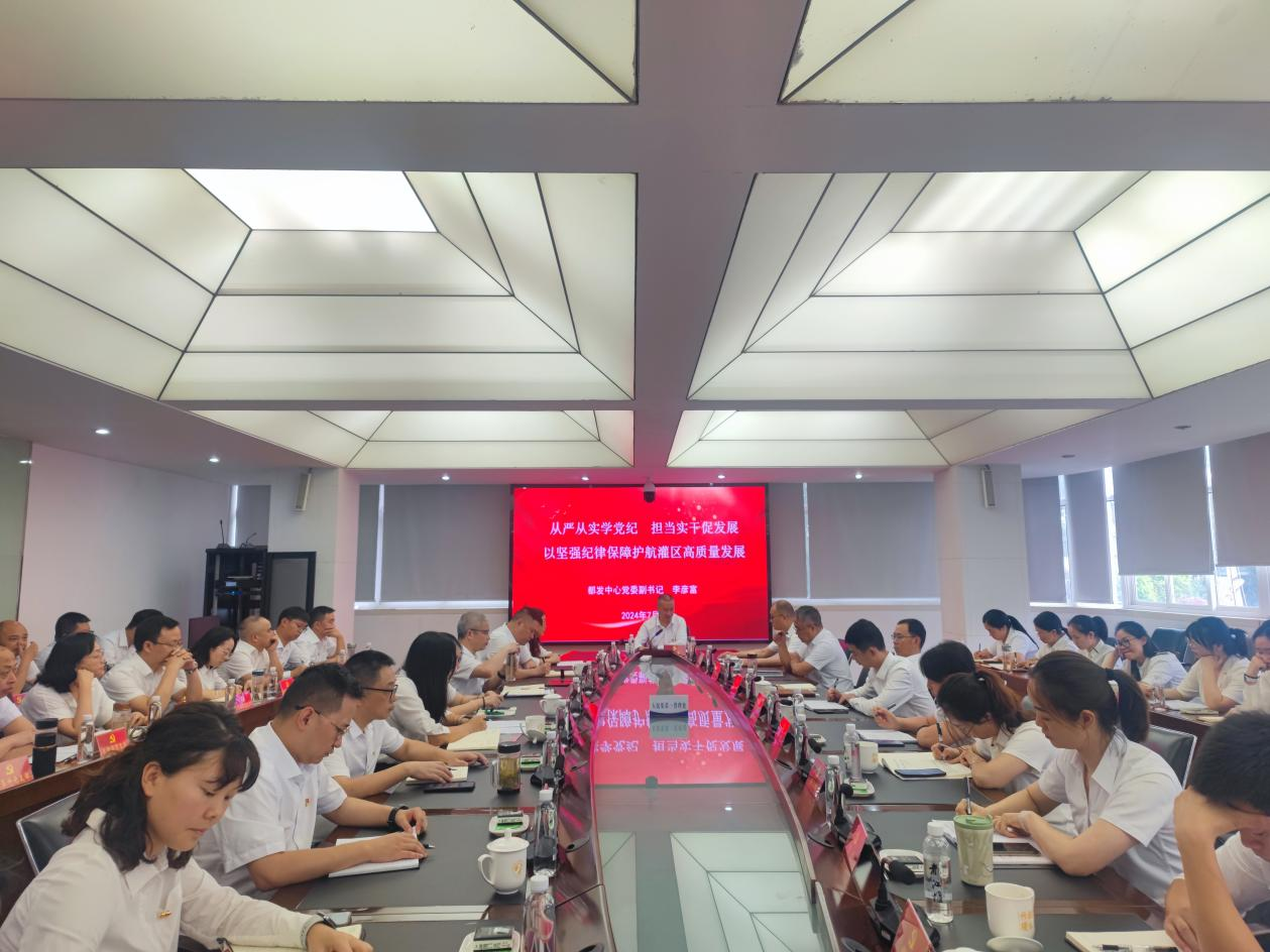 为深入推动党纪学习教育,引导党员干部学纪、知纪、明纪、守纪,7月17日,省都江堰水利发展中心党委副书记李彦富赴人民渠第一管理处以《从严从实学党纪 担当实干促发展 以坚强纪律保障护航灌区高质量发展》为题,为党员干部讲授党纪学习教育专题党课。人民渠第一管理处党委书记、处长周宗剑主持会议。