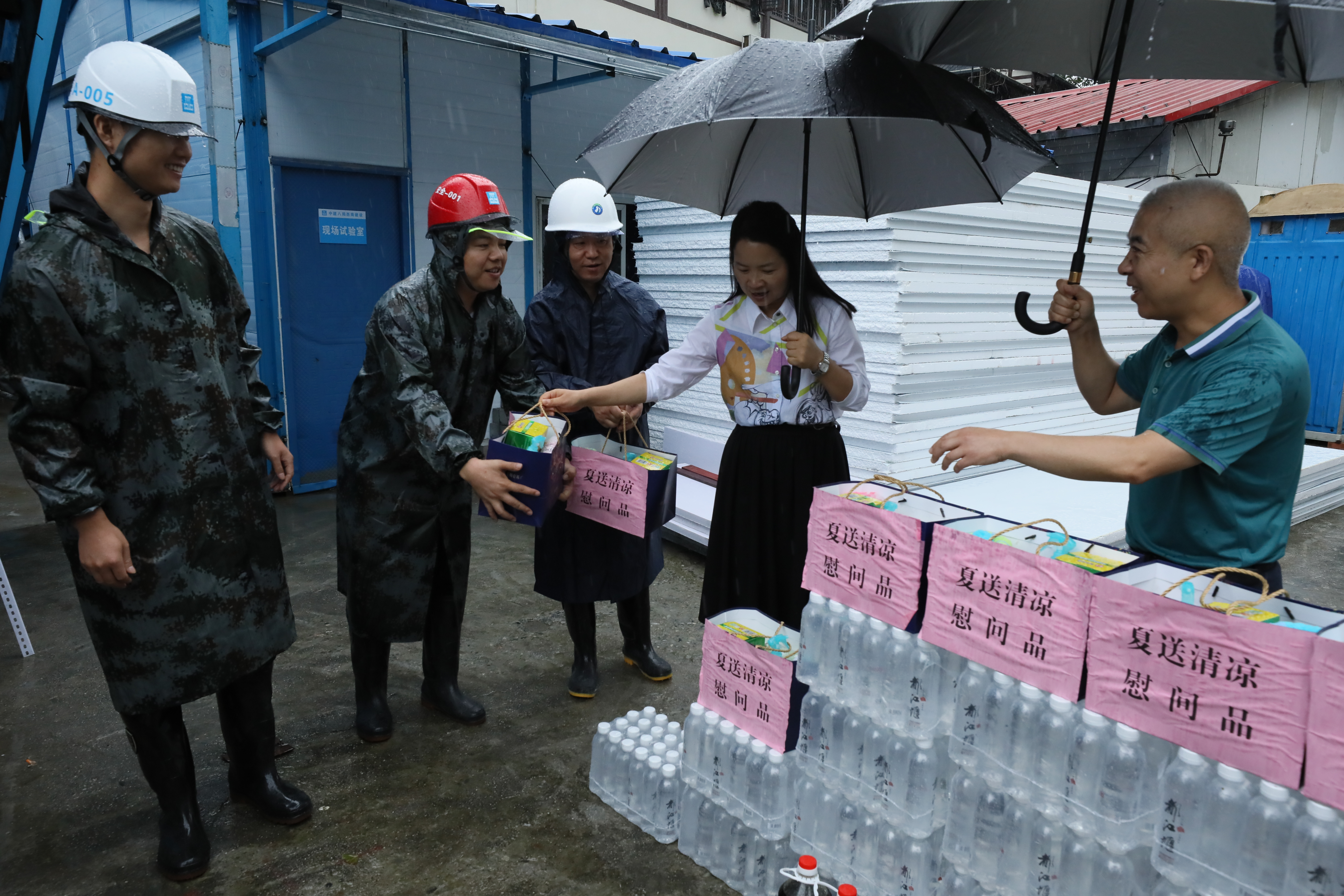 面对前段时间高温与近期暴雨连续登场“发威”,一线职工不惧挑战,坚守岗位。殷竹君一行对职工们致以诚挚问候,为职工送去清凉的同时也开启了暴雨中的“工会守护”。