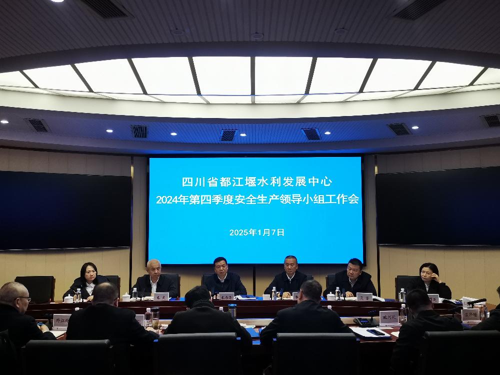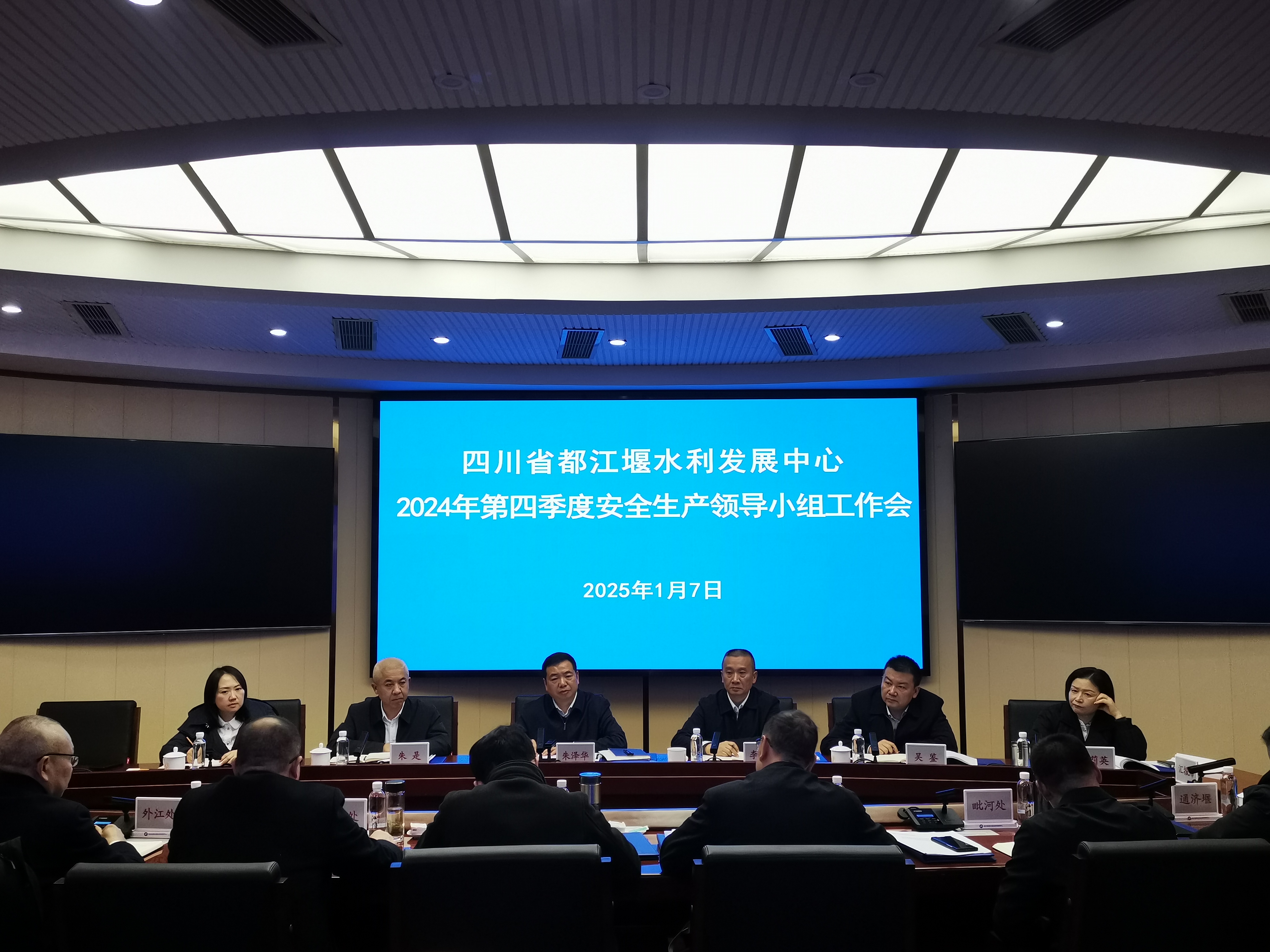 为贯彻落实2024年第四季度全省水利安全生产工作会议精神,2025年1月7日,省都江堰水利发展中心召开第四季度安全生产领导小组工作会。中心党委书记、主任,安全生产领导小组组长朱泽华主持会议并讲话。