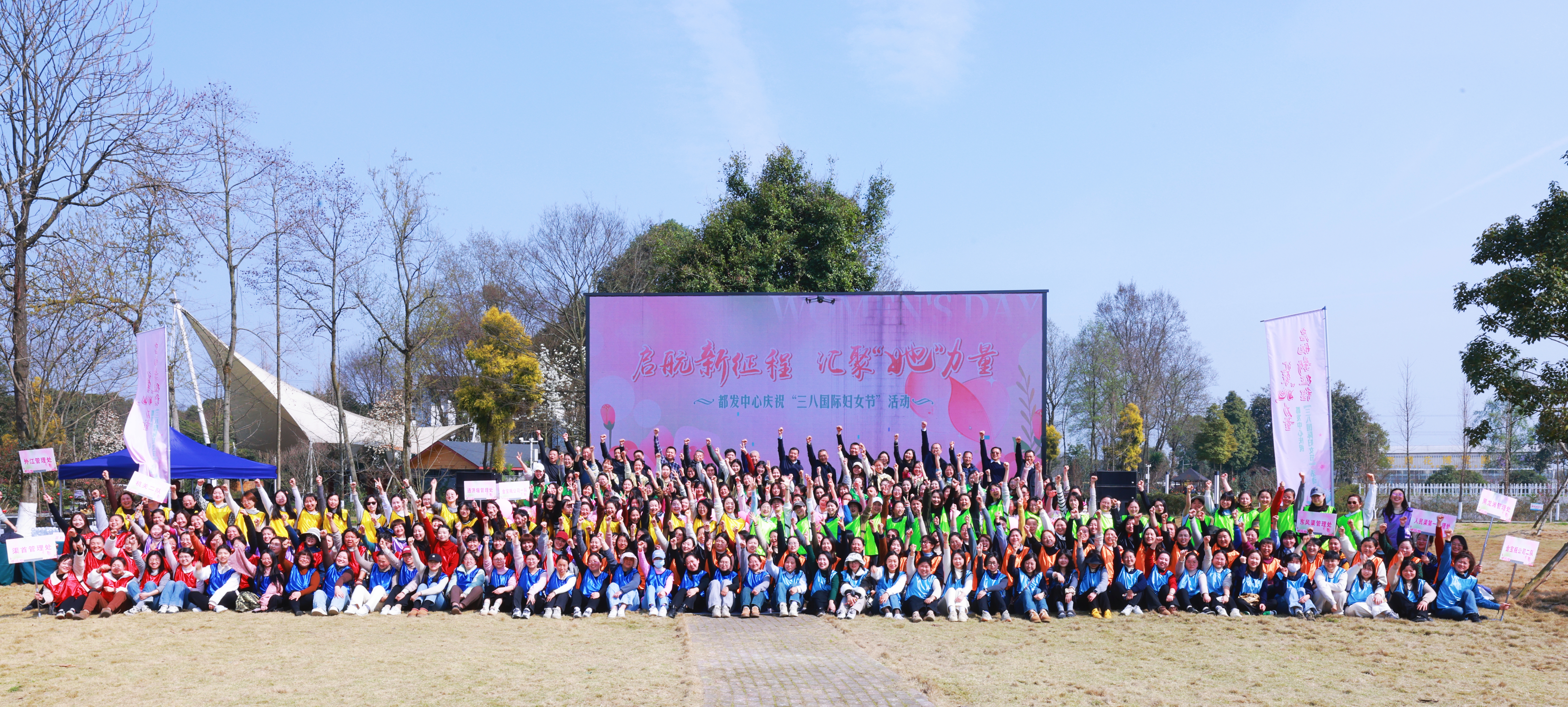 3月11日,大型户外主题活动在郫都区唐昌镇战旗村举行,中心300余名女职工参加活动。活动以古筝演奏《渔舟唱晚》、《太极八段锦》、舞蹈《都江水调》开场,现场设置“步步高升”“珠行万里”“共绘蓝图”等五项趣味项目,女职工们协作闯关,默契配合间彰显团队精神。在“共绘蓝图”环节,各管理处以拼图形式共同完成灌区灌溉区域图,用巧手描绘水利事业的宏伟愿景。