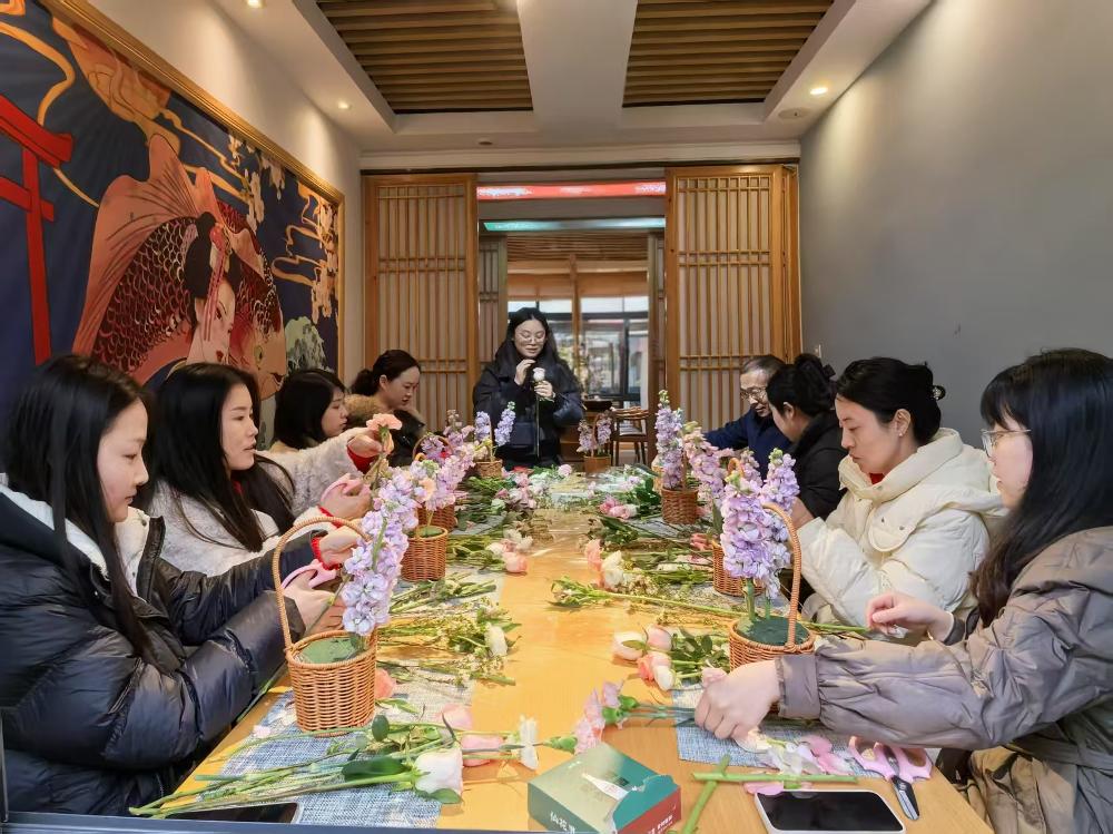各管理处结合自身特色,策划别具一格的主题活动。人民渠第一管理处开展“巧手巾帼 魅力指尖”手工制作,女职工们制作香薰蜡片与蝶骨巴特包,在花香与艺术中陶冶情操;外江管理处以“展水利巾帼风采 品生态时代芳华”为主题,组织采茶、制茶及水漆扇创作,将水利元素融入传统工艺,展现女职工“上得工地、下得田园”的多元风采;人民渠第二管理处、毗河管理处举办插花活动,女职工们以花为媒,创作风格各异的花艺作品,传递对生活的热爱。