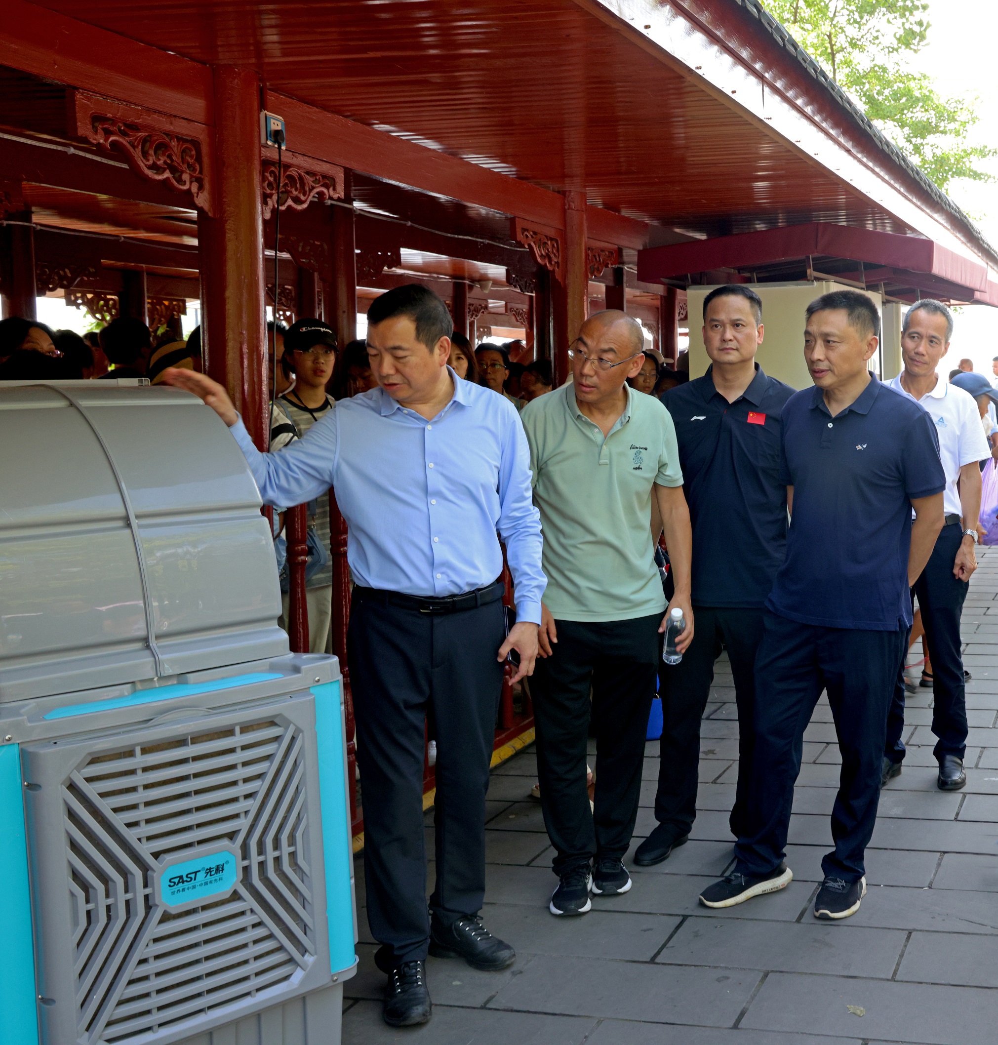 8月7日,省都江堰水利发展中心党委书记、主任朱泽华带队到都江堰水利风景区检查安全生产工作,都江堰市人民政府副市长曾滢茜陪同。检查组先后前往安澜索桥、金刚堤、观光车公司、周边停车场和商户等点位进行实地查看,听取了相关负责人关于安全管理运营方面情况汇报,对各点位的设施设备、值班值守、安全保障等进行全面检查,并提出了工作要求。