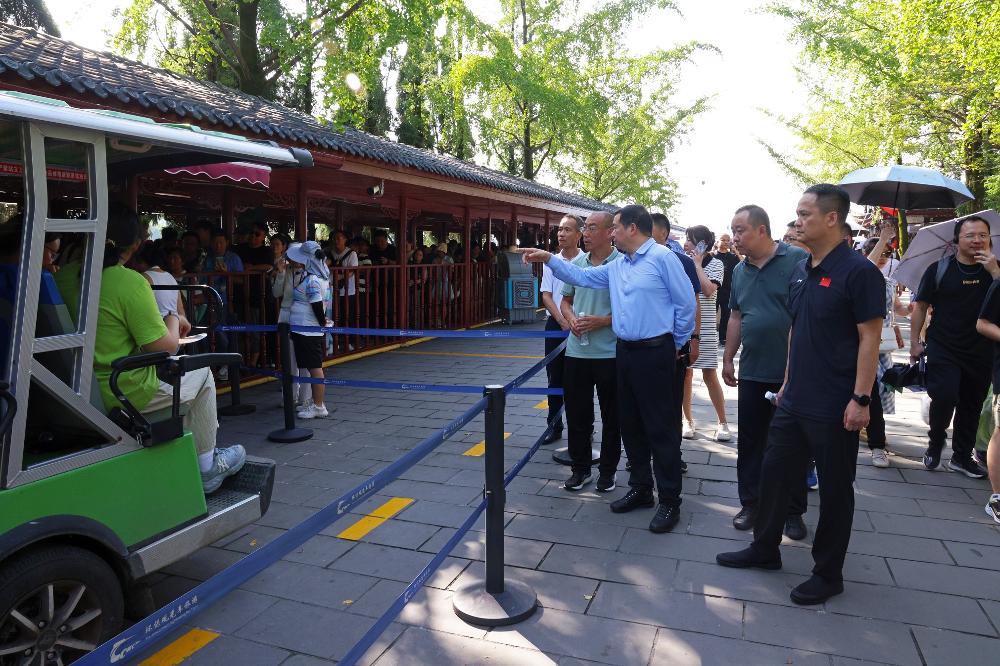朱泽华要求,一要筑牢安全防线,聚焦闸门、索桥、护栏、闸道、应急通道、水电消防、涉水建筑等基础设施,全面排查风险隐患,常态化开展检验检测、监督抽查,同时进一步健全安全生产管理体系,不断提高应急处置能力。二要提升服务水平。利用热感应数据监测平台,实时监测景区人流密度、设施运行等关键数据,建立“采集分析预警处置”闭环保障体系,适时协调做好人员限流,及时发布旅游温馨提示。同时,统一工作服标识,规范值班值守,做好秩序维持,以更周到的服务提升游客安全感获得感。三要丰富文旅供给。主动思考、超前谋划,立足都江堰资源禀赋,借助“蓝眼泪”“李冰文化”等特色优势,打造IP文旅夜经济,谋划文化水利项目,创新推进文化和旅游深度融合发展,做大做强文化旅游产业。