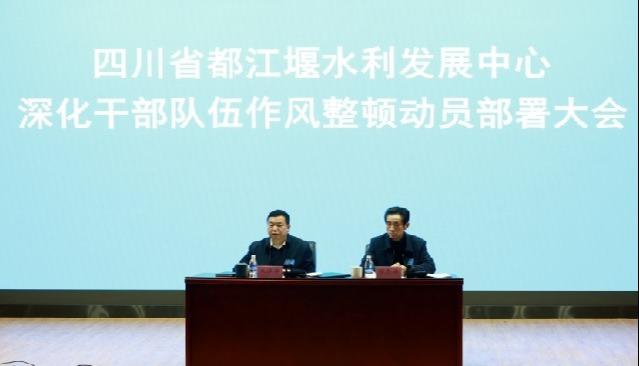 按照《省直大型灌区干部队伍作风建设专项整顿实施方案》要求。通过作风建设专项整顿动员部署。对都江堰灌区作风整顿工作作出部署。灌区各单位的体制机制、管理理念、文化特色、作风建设等都不尽相同。中心党委副书记万忠海宣读四川省都江堰水利发展中心关于深化干部队伍作风建设专项整顿的贯彻落实意见。