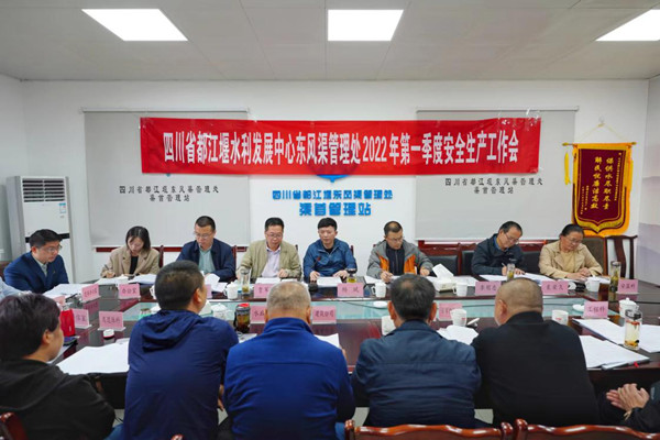 2022年5月18日上午,都发中心东风渠管理处在安靖水利管理站以视频会议方式召开2022年第一季度安全生产工作会。在家处领导,处属各单位主要负责人、安全员及部分职工代表参加会议。会议由副处长贾军容主持。