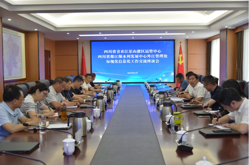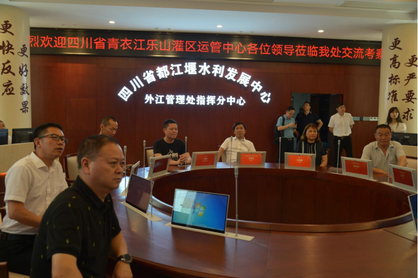 2022年6月24日,四川省青衣江乐山灌区运管中心副主任汪明君一行10人到外江管理处交流标规化、信息化工作经验。