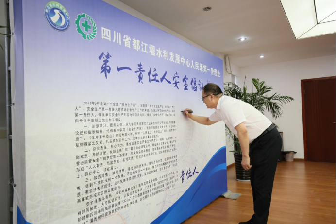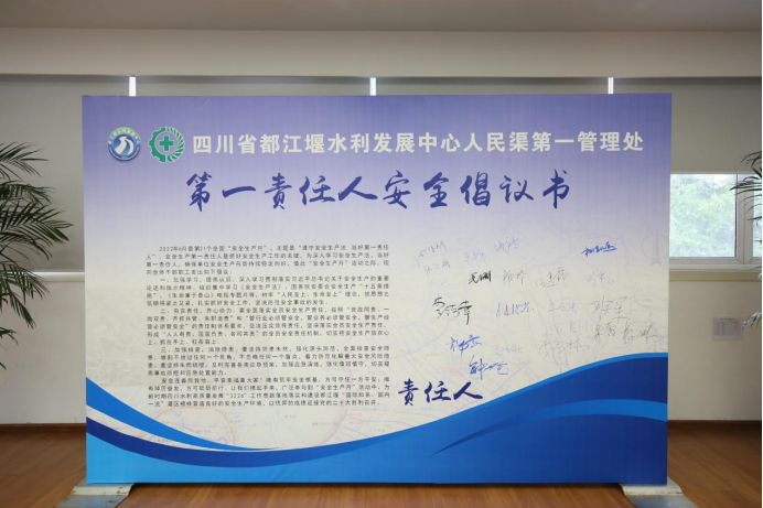 第一责任人安全倡议书签名承诺活动中,周宗剑发出第一责任人安全倡议,要求全处职工加强学习,提高认识;夯实责任,齐心协力;加强排查,消除隐患。各第一责任人在倡议签名墙上进行了签名承诺。