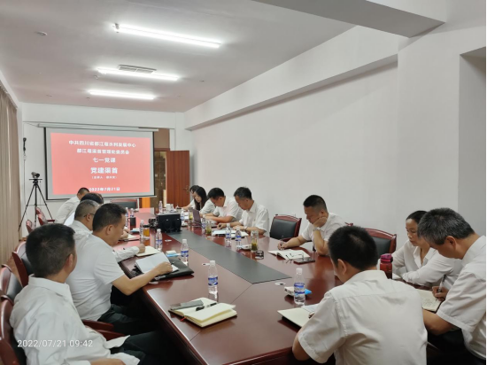 2022年7月21日,都江堰渠首管理处在处机关三楼会议室开展了“党建渠首——‘七一’党课活动”。本次党课由渠首管理处党委委员、副处长徐兴文主讲,题目为《筑牢思想防线,做清正廉洁好党员》。