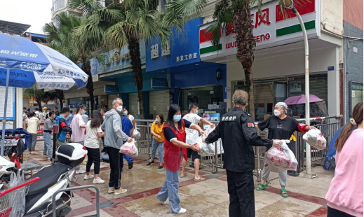 金牛站屈玉蓉协助武侯区果堰社区为兴元嘉园小区发放蔬菜包。