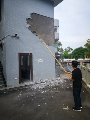 外江管理处大邑站文昌宫闸房外墙瓷砖大面积脱落