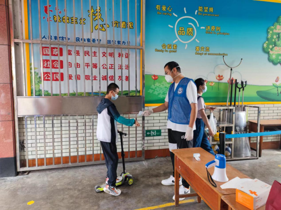 何秦川早早来到了志愿者服务点。每天,东林社区实验学校核酸检测点要对近4000人进行核酸检测。虽然要7:30才开始做核酸检测,医务人员还没到齐,但何秦川和其他志愿者根据社区分工安排做好服务准备工作,静静等待居民的到来。