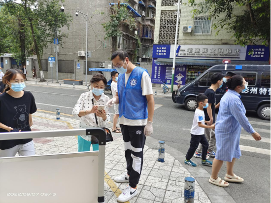 东林社区是人民渠第一管理处机关所在地彭州市老城区下属的一个社区,以老旧小区为主,社区里的居民也是老年人居多。自8月30日起彭州市开始连续多轮全员核酸检测,人民渠第一管理处主动联系社区,迅速成立防疫志愿服务队。作为队长的何秦川,每天与社区联系,统筹安排机关30多名志愿者开展志愿服务工作。