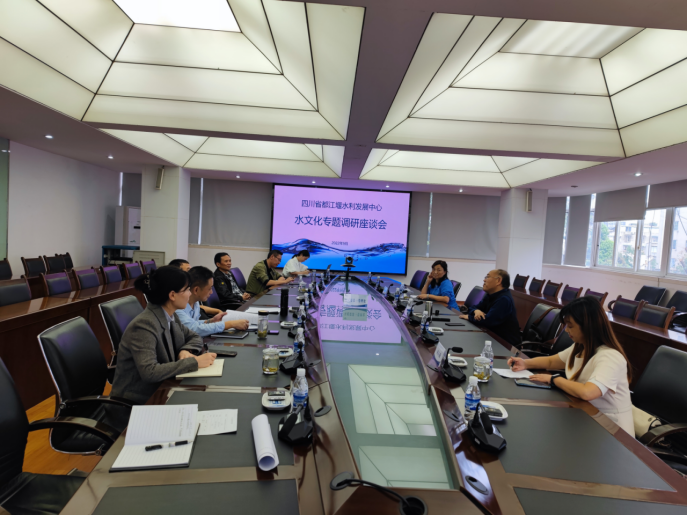 座谈会上,调研组听取了管理处关于水文化建设的进展情况和工作思路汇报。人民渠第一管理处从组织一支宣传队伍、打造一个宣传阵地、创建一个宣传品牌3方面汇报了水文化工作思路和通过彭州市人民渠沿线综合整治项目立体山水公园——官渠郊野公园二期建设之机,与彭州市政府共同打造“官渠”水文化名片工作进展情况。