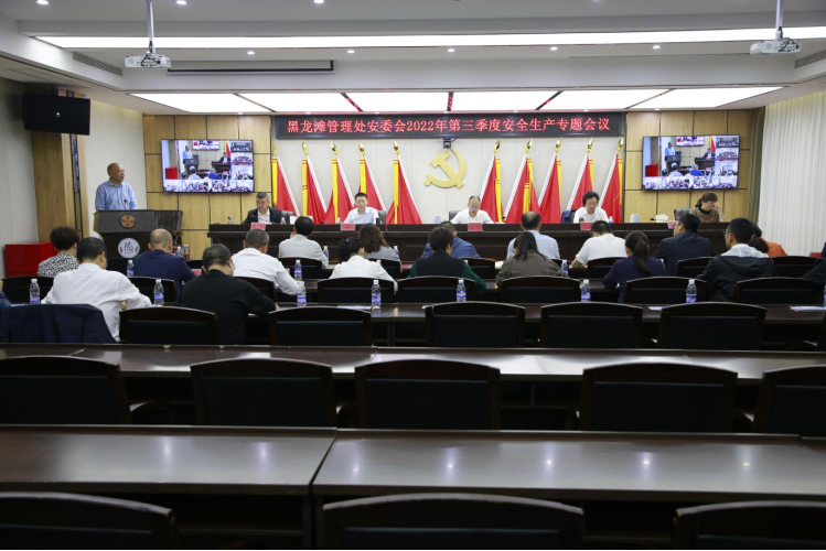 9月27日,四川省都江堰水利发展中心黑龙滩管理处召开2022年第三季度安委会暨国庆节前安全生产专题视频会议,会议由副处长钟陵主持,党委书记、处长曾理总结和安排部署当前的安全生产与疫情防控工作。