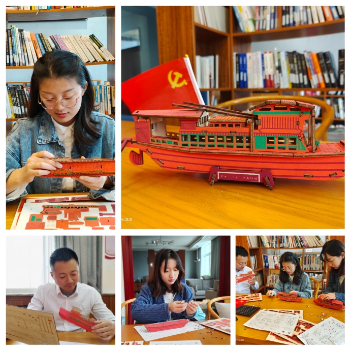 南湖畔碧水悠悠,红船旁青年向党。“拼‘红船’记忆”活动中,青年们在《中国红船》的歌声中就“红船”的历史由来、精神内涵以及红船精神影响下著名的历史事件进行了交流分享,并用手工拼装“红船”的方式,牢记党的奋斗初心,回顾党的百年历史,汲取党的精神力量。