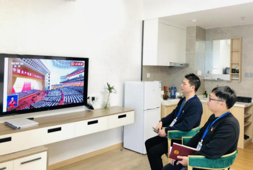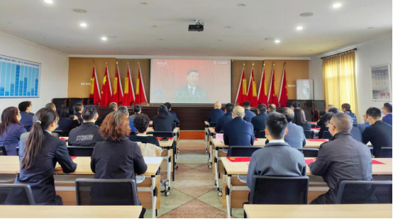 在人民渠第二管理处六楼会议室,包括党委委员、处级干部在内的近50名党员干部、职工群众、团员青年整齐着装,集中收看中国共产党第二十次全国代表大会开幕会直播,现场气氛热烈,大家难掩激动心情。
