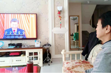 人民渠第二管理处的退休老党员在观看直播时感慨道:“没有共产党就没有今天的幸福生活,过去的成绩来之不易,未来的道路会更加宽阔,要永远感党恩、听党话、跟党走。”