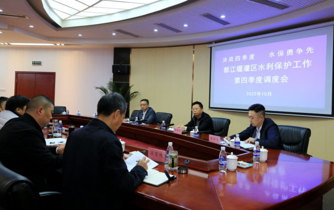 为贯彻落实10月9日水利厅2022年度第二次厅务(扩大)会议精神,按照10月10日都发中心党委(扩大)会议要求,10月14日上午,都发中心召开都江堰灌区水利保护工作第四季度调度会,及时吹响了灌区水利保护“决战四季度 水保勇争先”的冲锋号。会前,都发中心党委书记、主任朱泽华就开好本次会议作出指示,要求我们激发“决战四季度、奋战一百天”的内生动力和拼搏斗志,为完成《三年行动方案》创造性地开展大提升冲刺。都发中心副主任杜春明出席会议并讲话,会议由都发中心水利保护处处长李杰主持。