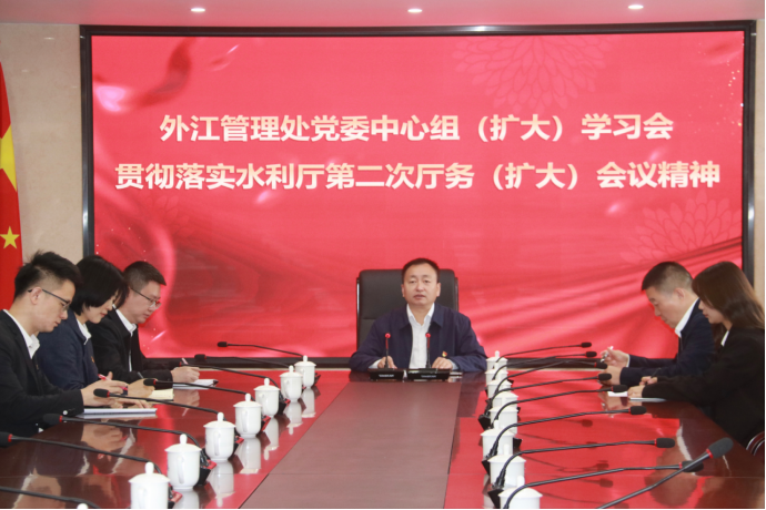 10月16日,四川省都江堰水利发展中心外江管理处在机关四楼会议室召开了中心组(扩大)学习会,深入学习贯彻水利厅第二次厅务(扩大)会议精神。外江管理处党委书记、处长肖伟胜主持会议。