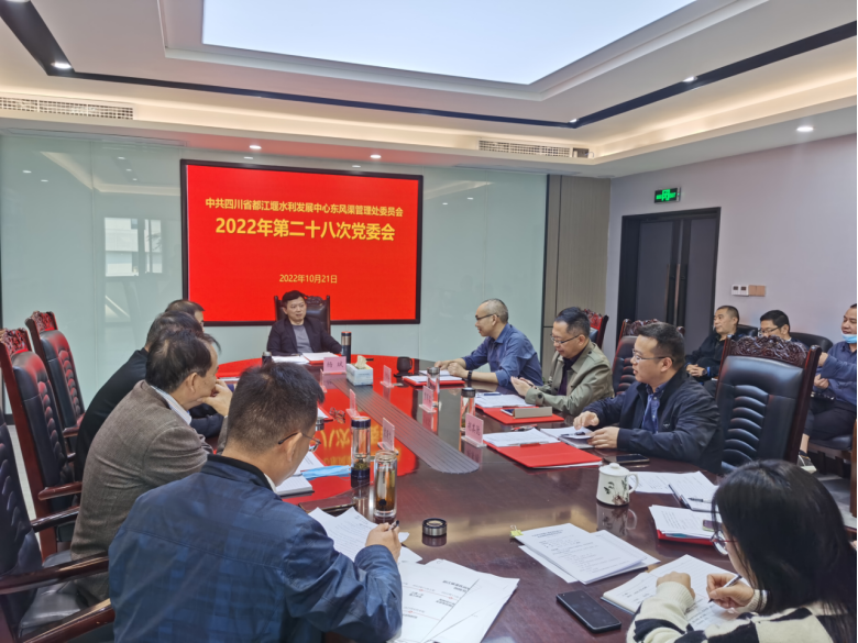 10月21日上午,都发中心东风渠管理处在处机关三楼会议室召开党委会,贯彻落实10月19日都发中心党委书记、主任朱泽华调研东风渠灌区重要讲话精神。