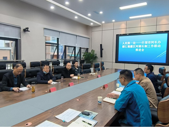 2022年10月25日上午,都江堰灌区什邡片区河湖长制工作联动推进会在什邡市政务中心召开。人民渠第一管理处副处长张乃禄,什邡市水利局副局长刘万宝、总工程师曾令华,人民渠第一管理处水利保护科、什邡水利管理站,什邡市河长办相关人员参会。