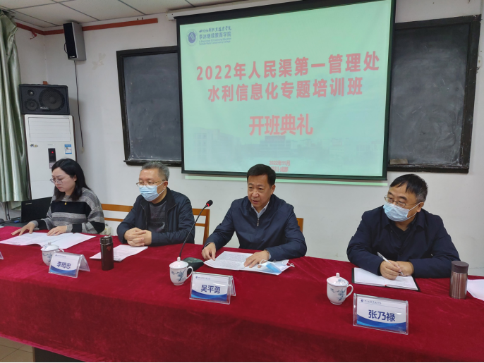 为深入贯彻落实全省水利“决战四季度、奋战一百天”安排部署,11月2日至4日,都发中心人民渠第一管理处在四川水利职业技术学院清江校区举办了2022年水利信息化专题培训班。培训开班式由四川水利职业技术学院李冰继续教育学院副院长王婷主持。人民渠第一管理处科信科科长朱蕾作为班长代表学员表态发言。四川水利职业技术学院纪委书记李明忠,人民渠第一管理处党委委员、副处长张乃禄、吴平勇出席开班仪式。