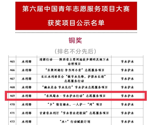 通过组织申报、省部级推报、资格审核、全国赛初评、全国赛终评、社会公示等环节,四川省都江堰水利发展中心东风渠管理处“东风蜀水·节水护水行动”志愿服务项目最终荣获第六届中国青年志愿服务项目大赛全国铜奖。