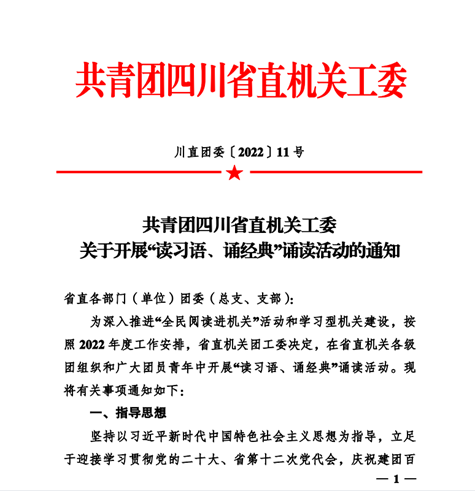 此次“读习语、诵经典”诵读活动由共青团四川省直机关工委组织,旨在引领省直机关及直属单位广大团员青年承扬五四精神、勇担时代责任、投身强国伟业,并深入推进“全民阅读进机关”活动和学习型机关建设,引导团员青年热心读书思考、热爱文化经典、提高文明素养。