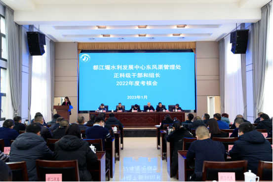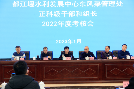 2023年1月12日,都发中心东风渠管理处召开正科级干部和组长2022年度考核会。会议由党委副书记李增永主持,在家处领导、正科级干部、组长及职工代表共计62人参加会议。
