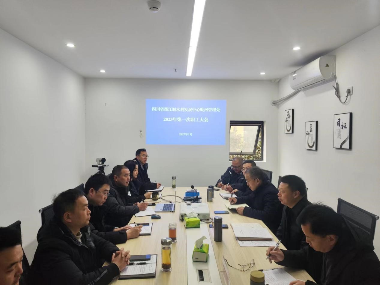 1月19日上午,都江堰水利发展中心毗河管理处召开职工会议,专题传达学习郭亨孝厅长在2023年第一次厅机关职工大会上的讲话精神和2023年都江堰水利发展中心机关职工大会精神,总结管理处2022年工作、安排部署2023年重点工作。会议由处长陈德宽主持。