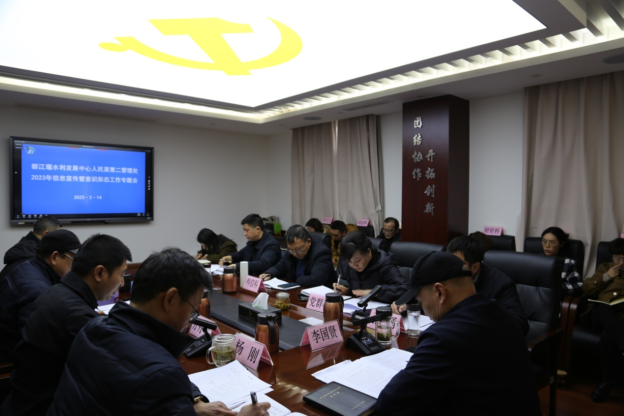 为深入学习贯彻党的二十大精神,进一步加强单位宣传暨意识形态领域工作力度,营造有利于改革发展的良好舆论氛围,2月14日下午,人民渠第二管理处党委书记、处长李国贤主持召开2023年宣传暨意识形态工作专题会。