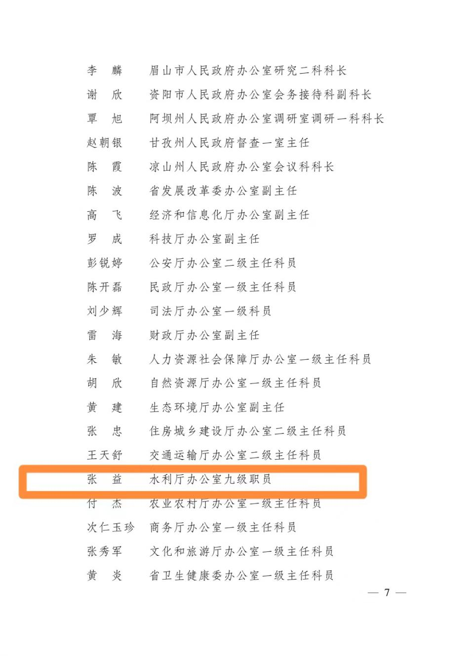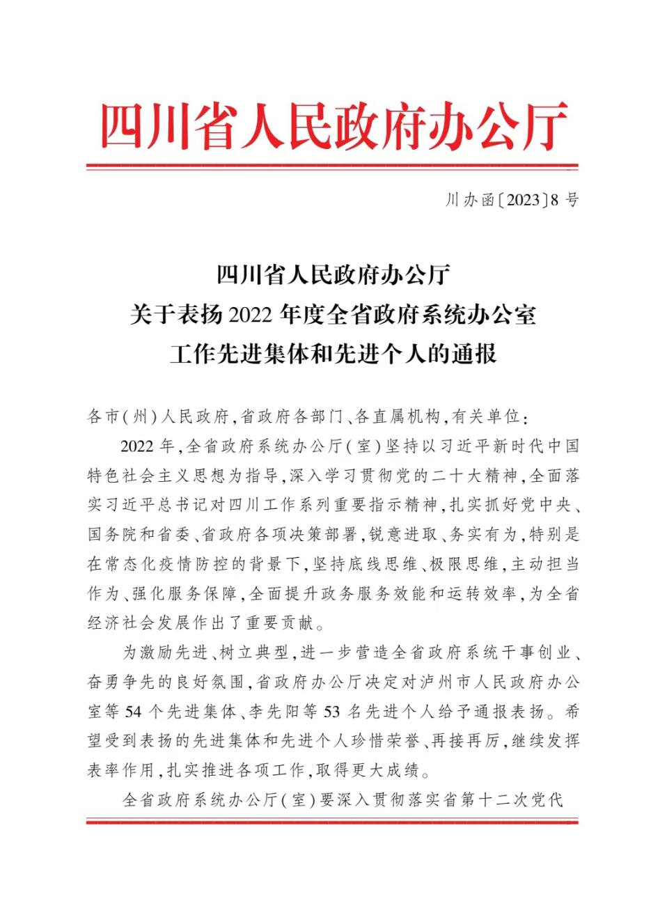 近日,四川省水利厅办公室张益被四川省人民政府办公厅评为全省政府系统办公室工作先进个人。