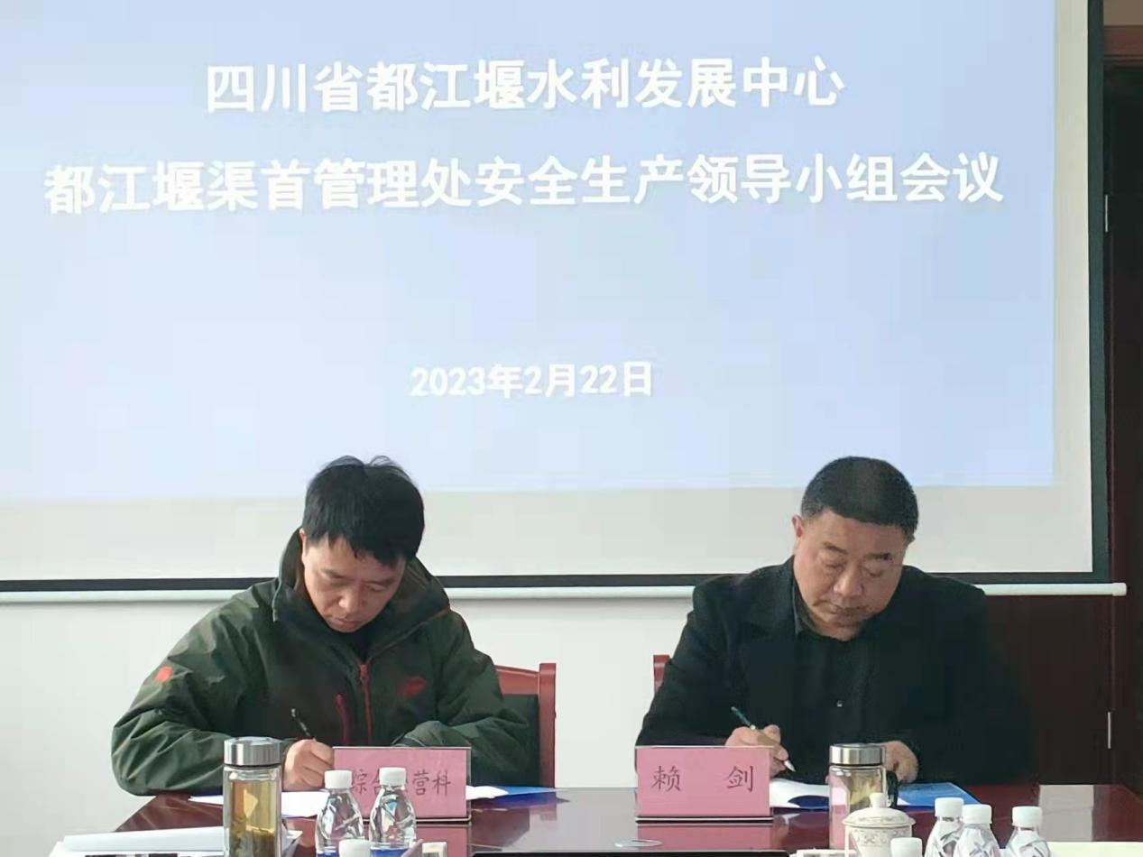 会上徐兴文宣读了都江堰渠首管理处安全生产领导小组成立文件;处工程科、综经科、水闸站、安监科分别就本科室(站)安全生产工作情况进行了汇报;会议审议通过了《生产安全事故应急预案及应急处置工作流程》、《安全生产总目标和2023年年度目标》。