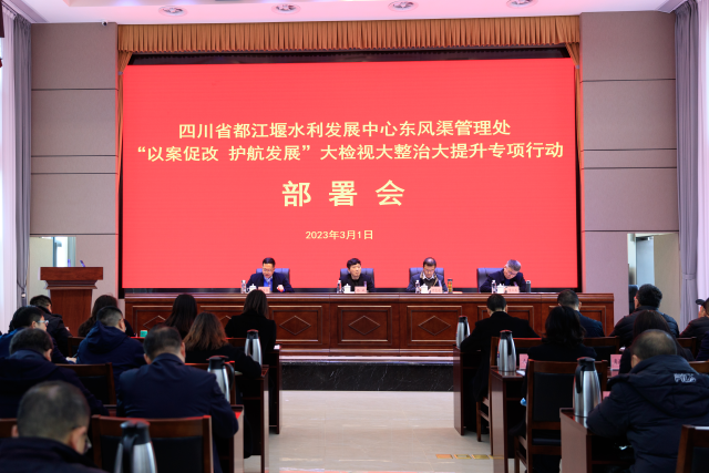 为深入贯彻落实2023年全省水利系统党风廉政建设工作会议精神,认真落实厅党组、驻厅纪检监察组《关于在厅直系统开展“公款旅游”、违规设立使用“小金库”等违反中央八项规定精神问题专项治理的通知》有关要求,传达学习都发中心“以案促改 护航发展”启动会精神,切实做好案件查办“后半篇文章”,2023年3月1日下午,东风渠管理处第一时间召开“以案促改 护航发展”大检视大整治大提升专项行动部署会。会议由处党委委员、副处长贾军容主持,处党委书记、处长杨斌作了讲话。 会上,处党委委员、副处长叶生进通报了东风渠管理处在“跑冒滴漏”大检查中发现的问题”;都发中心纪委专职副书记、纪检监督一室主任李红兵对进一步加强差旅费管理和迎接厅党组巡察工作提了要求;处党委书记、处长杨斌就东风渠管理处开展“以案促改 护航发展”大检视大整治大提升专项行动工作进行了专题部署。