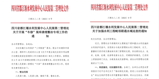 纵横联动,凝聚合力打好攻坚战。围绕水工程、水环境、水生态安全重点问题,强化与属地河长办、检察院联动,重大涉水事件实现两日内协同响应处理机制。以都江堰灌区水利保护“三项制度”为具体抓手,联合灌区上下游、左右岸力量,发挥基层治理优势,联合乡镇进行排查整治,实现信息共享、问题同治、各司其职、互不推脱,做到守土有责,守土尽责。