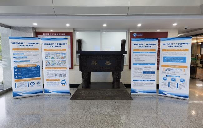 水法宣传进机关,科学用水入人心。外江管理处作为成都地区7个区市县农业灌溉的主要供水单位,一直以来秉承习近平总书记“十六字”治水思路,为筑牢自身责任意识,中国水周当天通过在处机关大楼张贴水法宣传画、大屏滚动幕播放水法宣传图片及视频,组织职工线上线下学习水法律法规等形式,向处机关干部职工推广普及节水用水小知识,宣传节水重要性,介绍节约用水的方法,提升干部职工的日常节水意识、忧患意识、号召干部职工在工作、生活中以身作则,做爱水、护水、节水的模范,以实际行动助力水利法律法规深入人心。