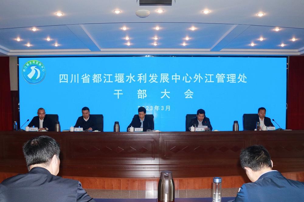 3月30日,四川省都江堰水利发展中心外江管理处召开干部大会,水利厅党组成员、副厅长张强言出席会议并讲话,厅人事处处长牟春宣布了厅党组关于外江管理处主要领导职务任免的决定,会议由都发中心党委委员、副主任吴鉴主持。