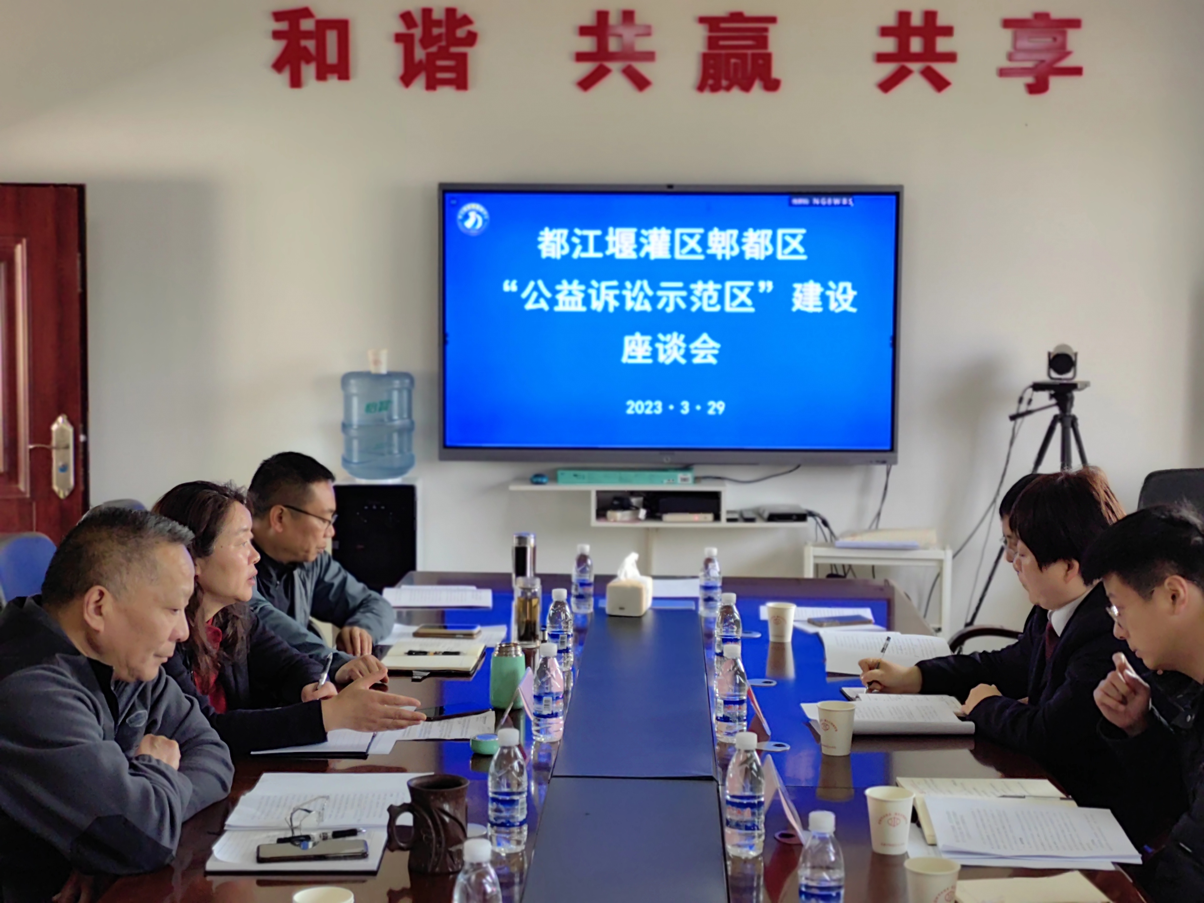 此时,河畔的郫都水利管理站内,一场干货满满的座谈会正在热烈的氛围中进行。3月29日,东风渠管理处、郫都区总河长办、郫都区人民检察院就东风渠灌区首个水利保护公益诉讼示范区建设达成高度共识,全面强化,标本兼治的“幸福河湖3.0”建设取得重大突破。