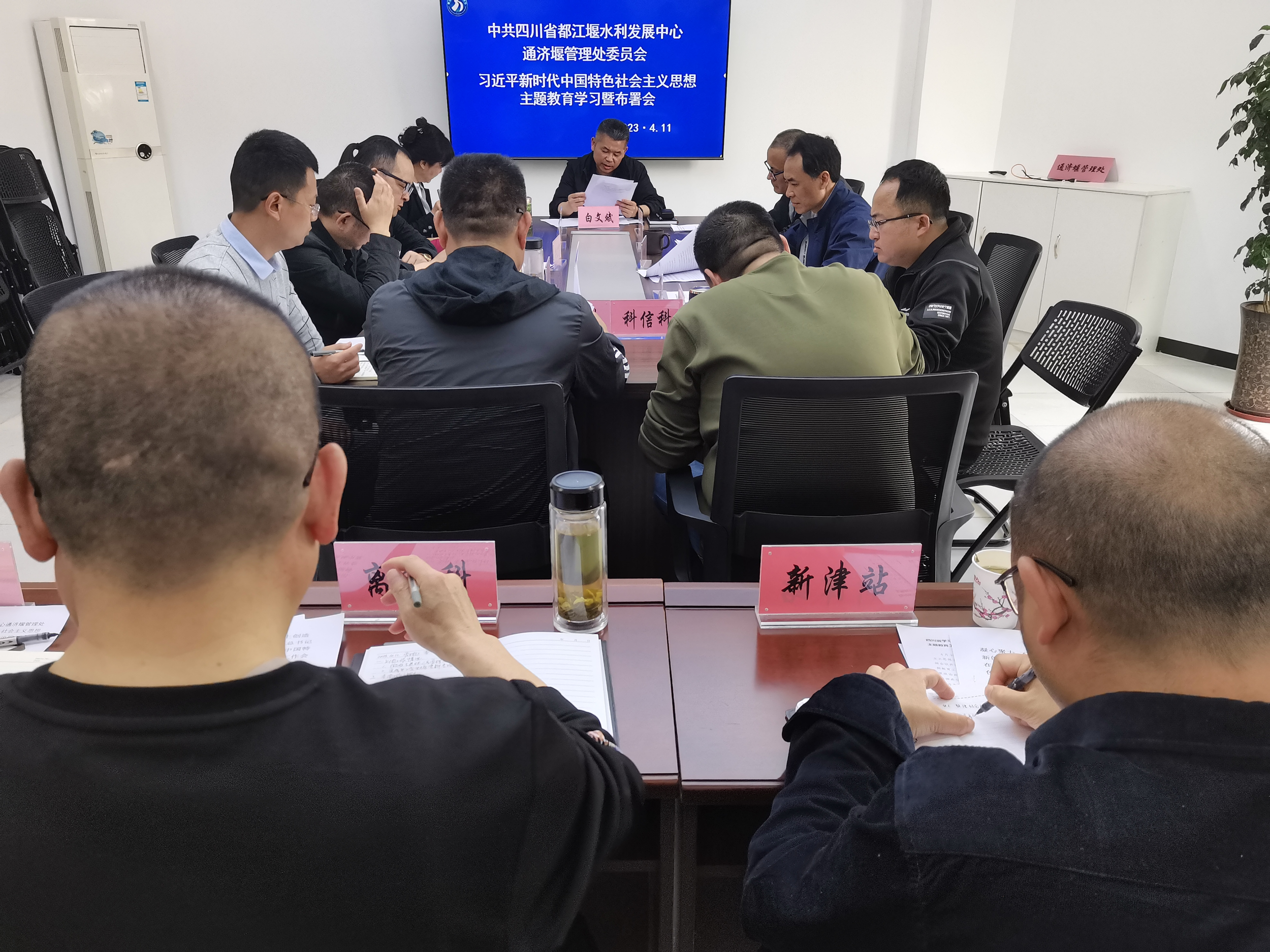 4月11日上午,通济堰管理处召开习近平新时代中国特色社会主义思想主题教育学习暨动员部署会,深入学习习近平总书记在学习贯彻习近平新时代中国特色社会主义思想主题教育工作会议精神,传达学习四川省学习贯彻习近平新时代中国特色社会主义思想主题教育工作会议精神以及《凝心聚力 不断在新征程上创造新的历史伟业—习近平总书记在学习贯彻习近平新时代中国特色社会主义思想主题教育工作会议上的重要讲话在全国各地引发强烈反响》等文件精神。党委书记、处长白文斌主持会议并作动员讲话。