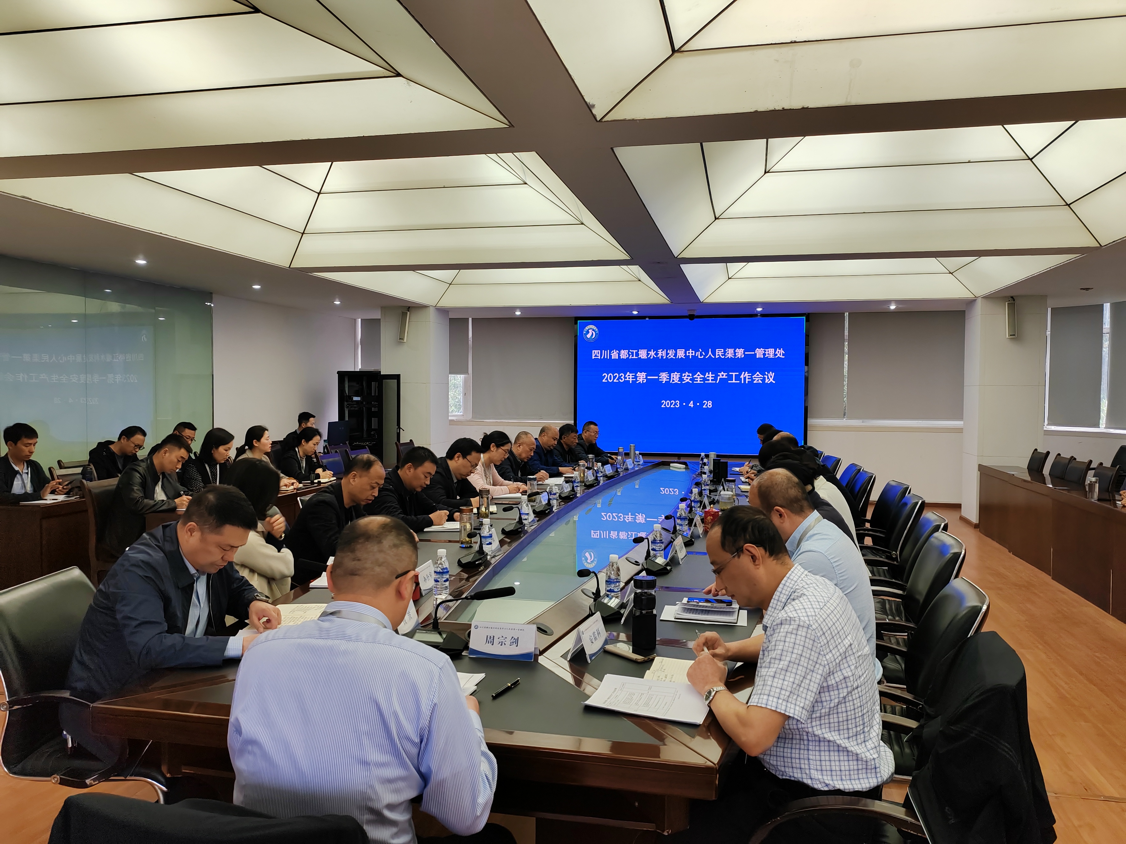 4月28日,人民渠第一管理处2023年第一季度安全生产工作会在处机关二楼会议室召开。会议以视频方式进行,处机关二楼会议室设主会场,各管理站设分会场。会议由处安全生产领导小组副组长、副处长钱波主持。