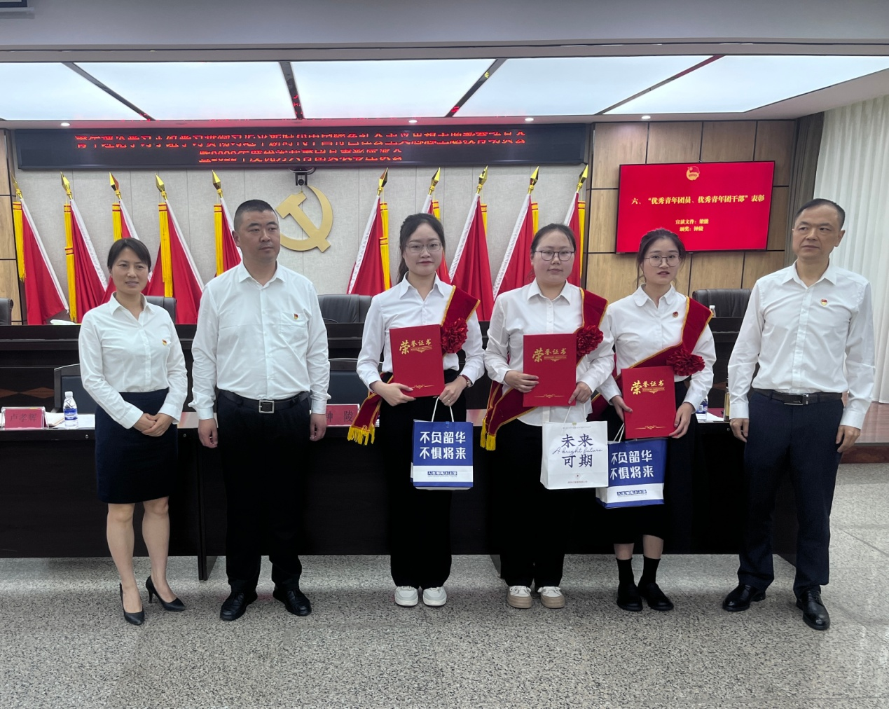 值“五四”青年节来临之际,黑龙滩管理处组织召开青年理论学习小组学习贯彻习近平新时代中国特色社会主义思想主题教育动员会暨2022年度优秀共青团员表彰座谈会,受党委书记、处长曾理委托,党委委员、副处长钟陵出席会议并为青年团员讲团课《牢记嘱托跟党走 青春建功新时代》,党群科负责人、全处青年团员参加会议。