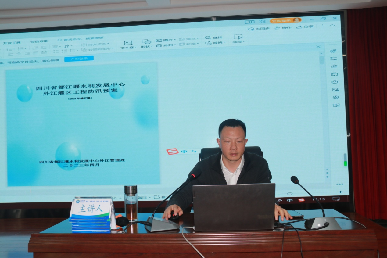 工程运行管理科科长带着大家认真学习了《四川省都江堰水利发展中心外江灌区工程防汛预案》,提高突发事件应急反应和处理能力,保证抗洪抢险救灾工作有序高效 ,保障灌区防洪安全。