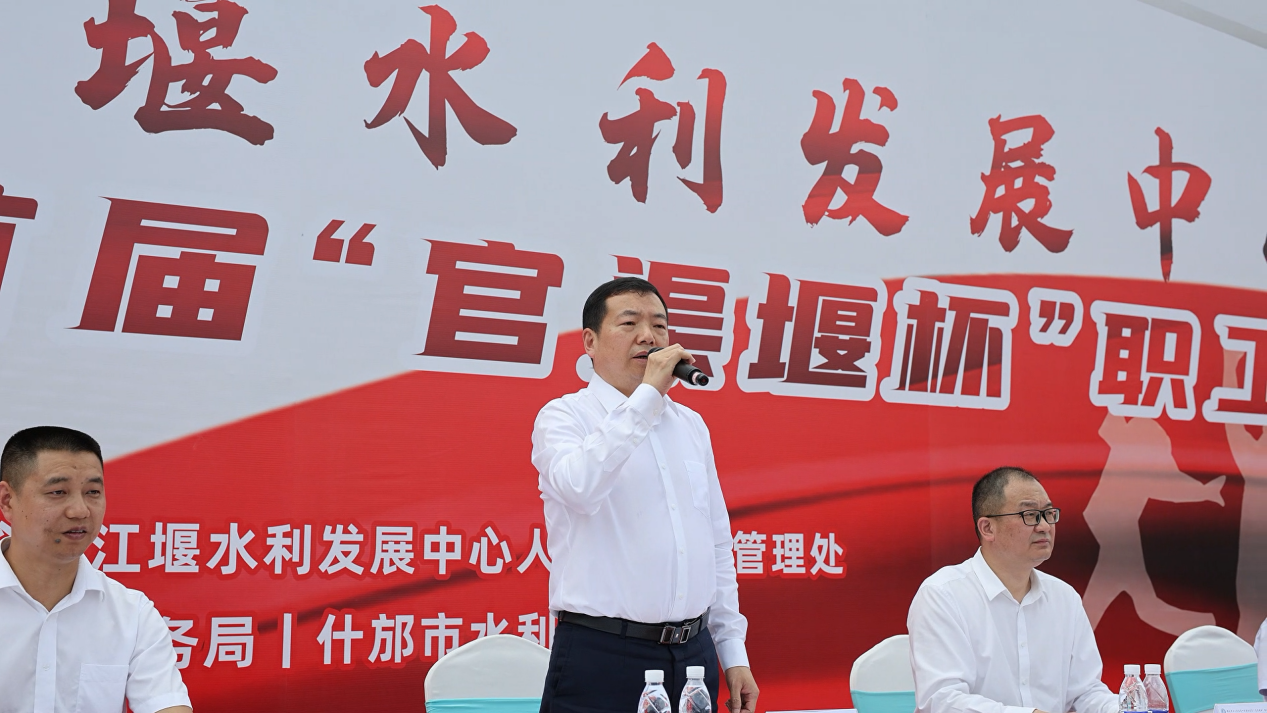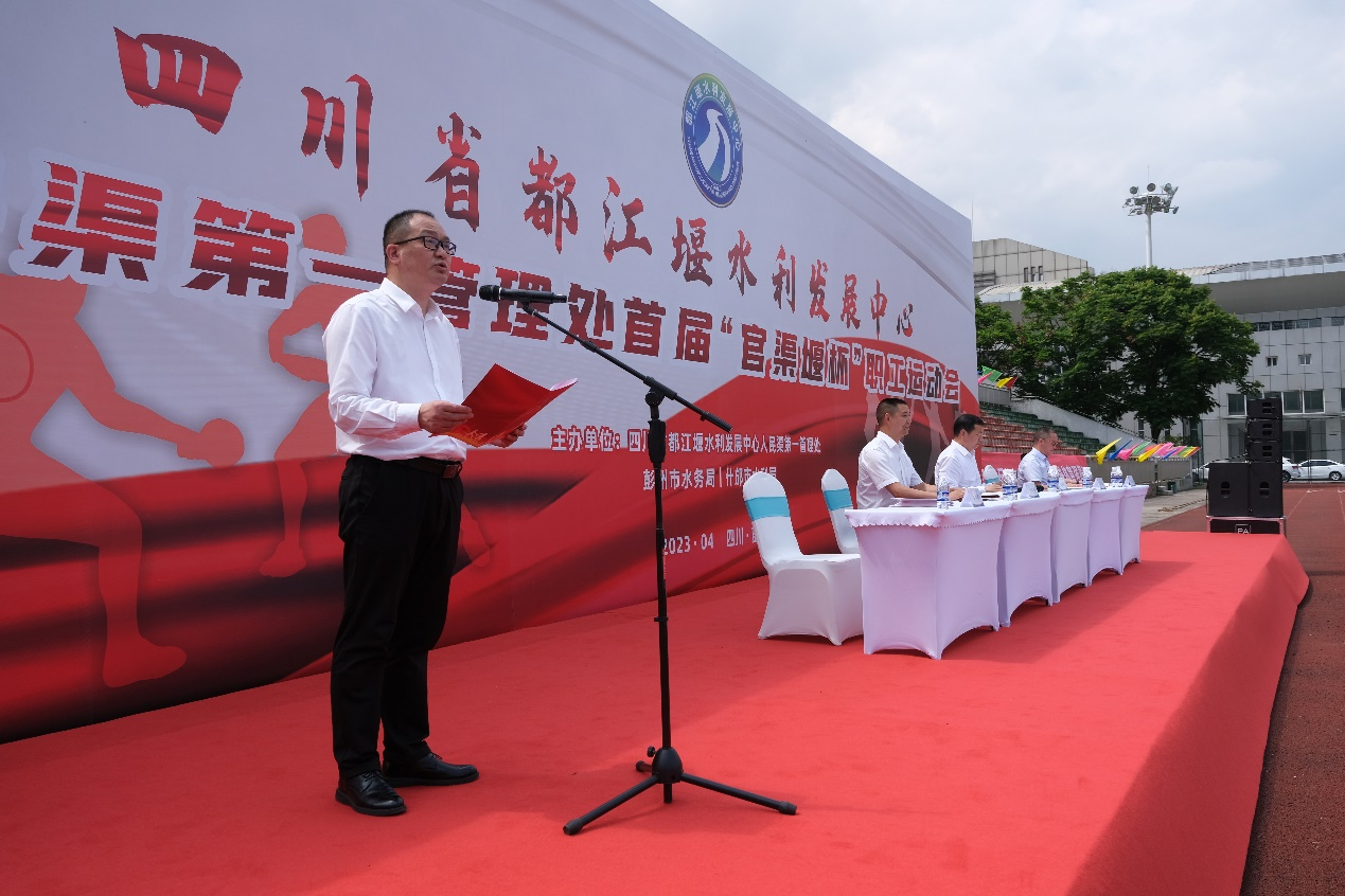 人民渠第一管理处党委书记、处长周宗剑为运动会致辞,他代表大会组委会对本次运动会的召开表示祝贺,对出席开幕式的领导和来宾表示热烈欢迎,对筹备本次运动会的工作人员表示感谢,希望全体运动员顽强拼搏,赛出风格,赛出水平,把运动会的拼搏精神带到实际工作中,为决胜“灌区榜样”建设交出满意“答卷”,并预祝本届运动会取得圆满成功。彭州市水务局党组书记、局长万里飞,什邡市水利局党组书记、局长邓元建分别致辞。