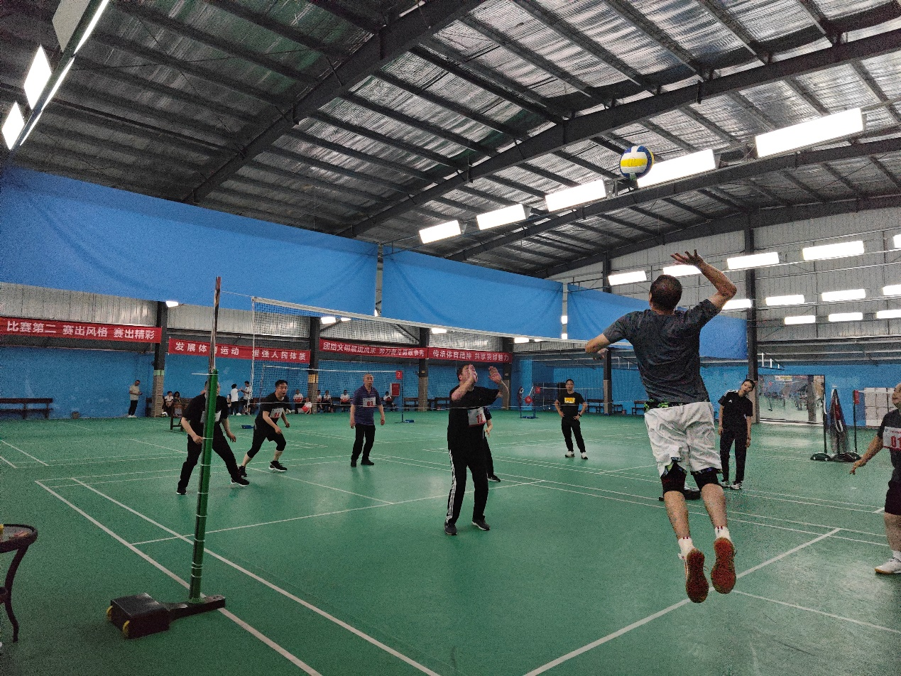 气排球赛场上,球员们个个精神抖擞,身姿矫健,配合默契,各个队伍之间精彩对打,球员时而强力扣杀、时而机智轻吊、时而力挽狂澜,顽强救球,展现出以快制快等各种战术。