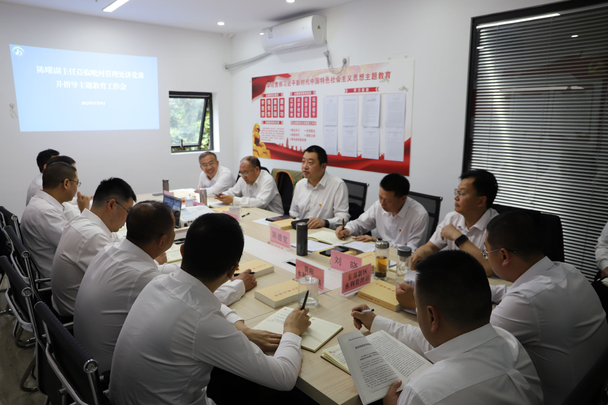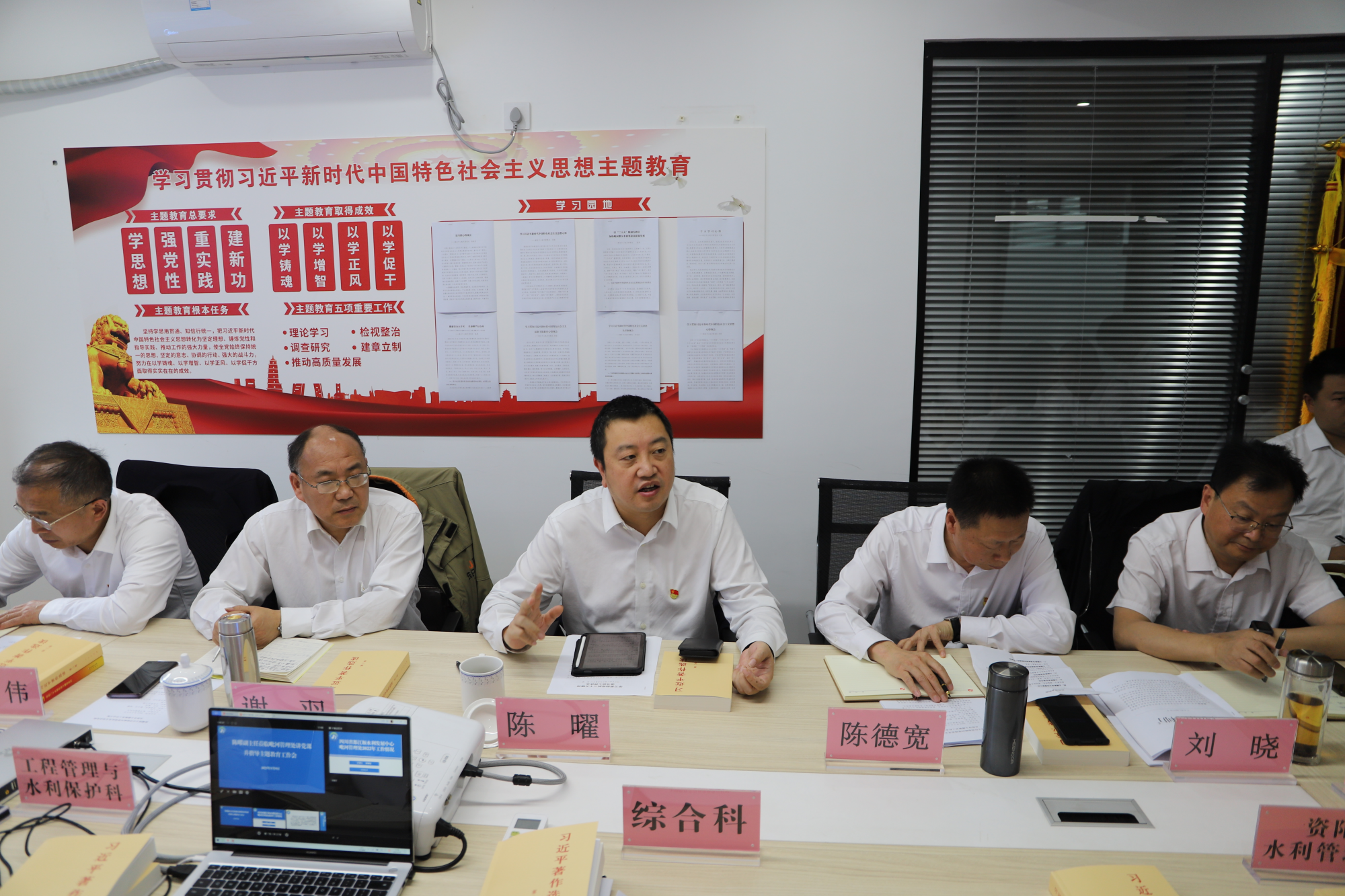 5月9日,都江堰水利发展中心党委委员、副主任陈曜莅临毗河管理处,在机关会议室开展党支部讲党课及指导主题教育工作。