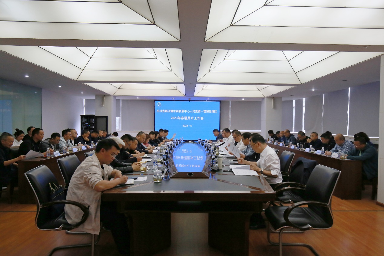 会议宣读了都江堰水利发展中心《关于印发都江堰灌区2023年度供水计划的通知》和《都发中心关于通报表扬都江堰灌区2022年度用水管理工作先进集体和先进个人的通知》;总结了人民渠第一管理处灌区2022年供水工作,并针对2023年春季气象预测、春灌用水特点、工程情况、用水形势、存在问题等进行分析研判,对2023年春灌工作总体思路、工作措施和时间节点进行了安排部署。人民渠第二管理处副处长张涌回顾了2022年春灌用水工作,通报了丘陵地区2023年用水形势,就今年春灌用水提出希望。彭州市水务局和广汉市水利局就水权与农业水价综合改革、2023年春灌用水安排、存在困难及应对措施进行了交流发言。