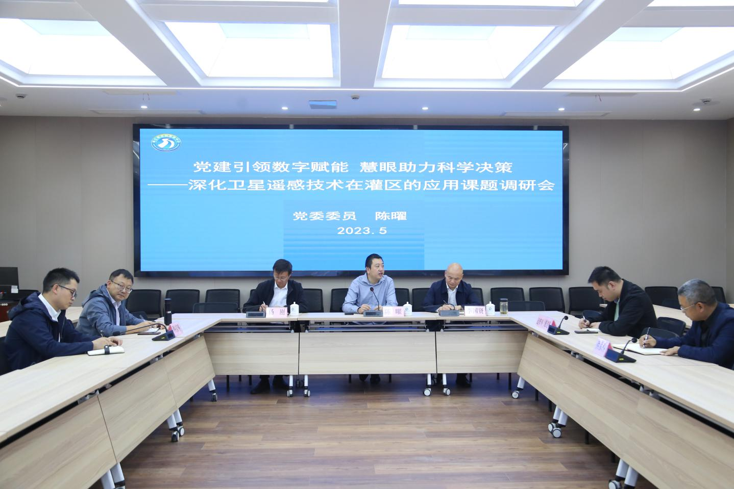 调研会围绕课题研究思路、创新点、实际应用等开展交流讨论。陈曜听取了人民渠第二管理处关于灌区情况、水利科技信息化的建设及应用等工作汇报;对卫星遥感技术原理特点、应用领域及相关成效等进行介绍。调研组希望通过此次课题调研,解决三方面问题:一是利用遥感资料并结合DEM数据划定都江堰灌区图,以及8个灌区处分界图;二是通过实地调研灌区典型区域,收集比对现场资料,核实灌区土地实际利用情况,并总结分析都江堰灌区土地利用变化趋势;三是通过对遥感数据变化情况的分析结果,为下一步都江堰灌区水资源调度、防汛抢险、渠系配套规划布局等业务工作提供决策参考依据。
