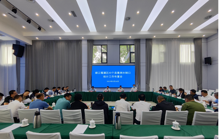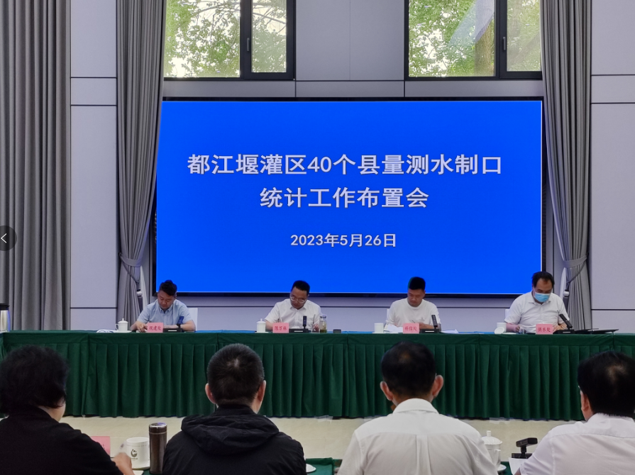 为加快推进都江堰灌区水权水价改革,扎实做好灌区各县(市、区)用水精准计量工作,5月26日,四川省都江堰水利发展中心在东风渠管理处召开都江堰灌区40个县量测水制口统计工作布置会,中心党委委员、副主任陈万林出席会议并讲话,中心科信处、供水处、规建处相关负责人,灌区各管理处分管供水的副处长以及供水科、科信科、运管科负责人参加会议。